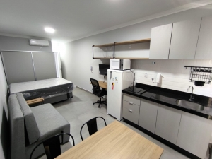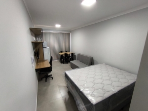 Studios próximo a Unifei em construção. Entrega em março/2026 Studio completo! Entregue totalmente pronto e mobiliado. Com cama casal baú, armários planejados, ar condicionado, banheiro completo, escrivaninha/cadeira de estudo, TV, sofá cama, mesa com 4 cadeiras, geladeira, microondas, cooktop de indução, purificador de água e persiana. O prédio conta com elevador e uma lavanderia completa por andar, Tem placa de energia solar, o que reduz o valor do condomínio. Valor do condomínio já incluso água, energia elétrica e internet: R$ 260. Valor do investimento: A partir de R$ 224.700